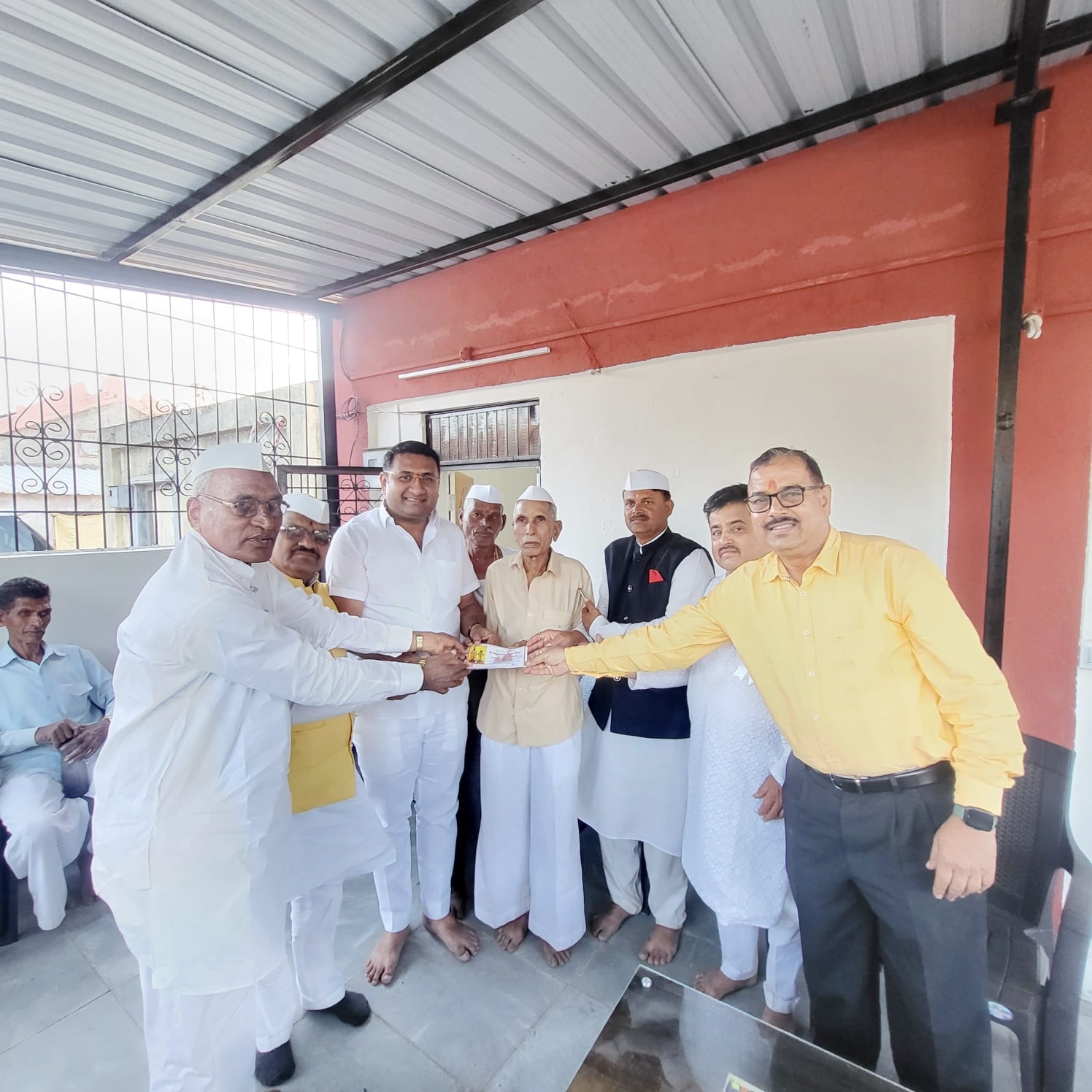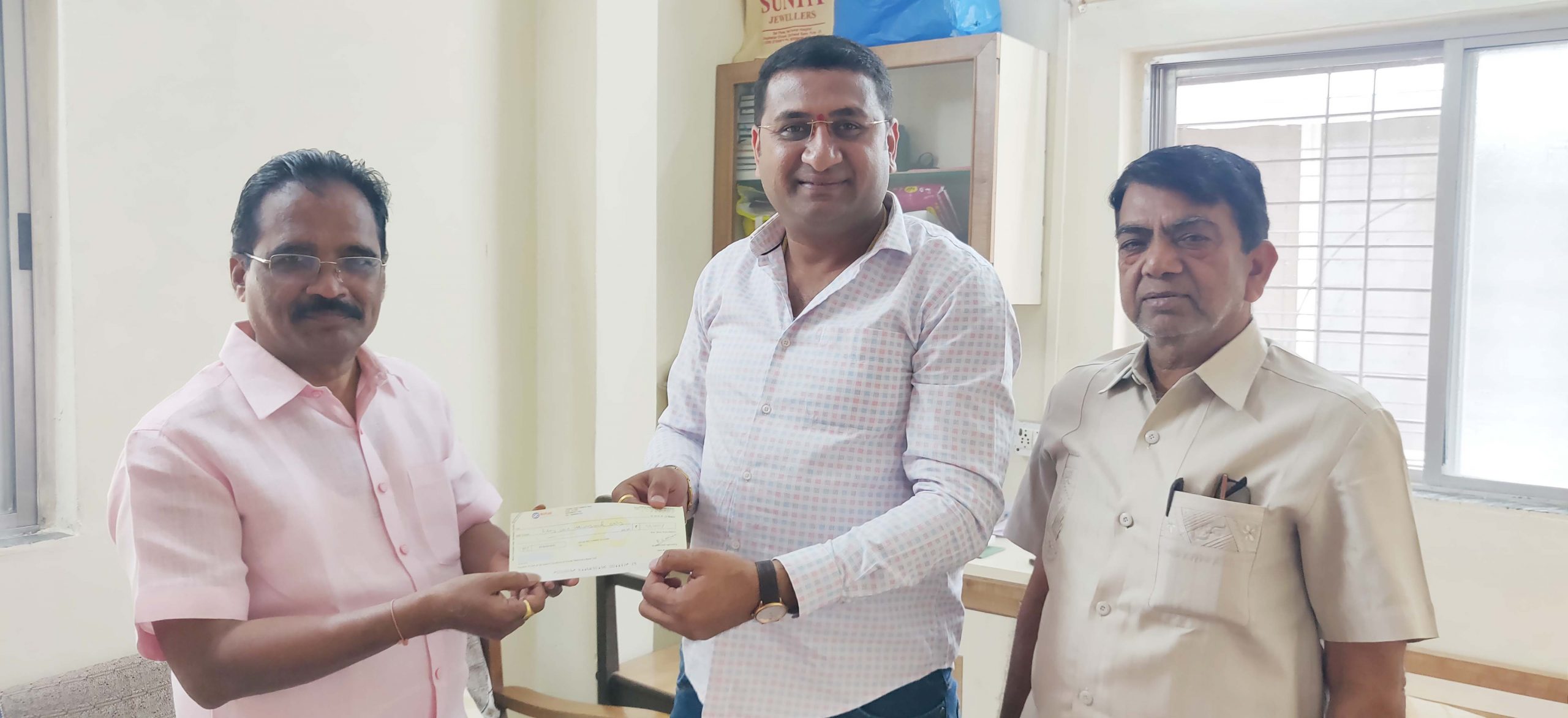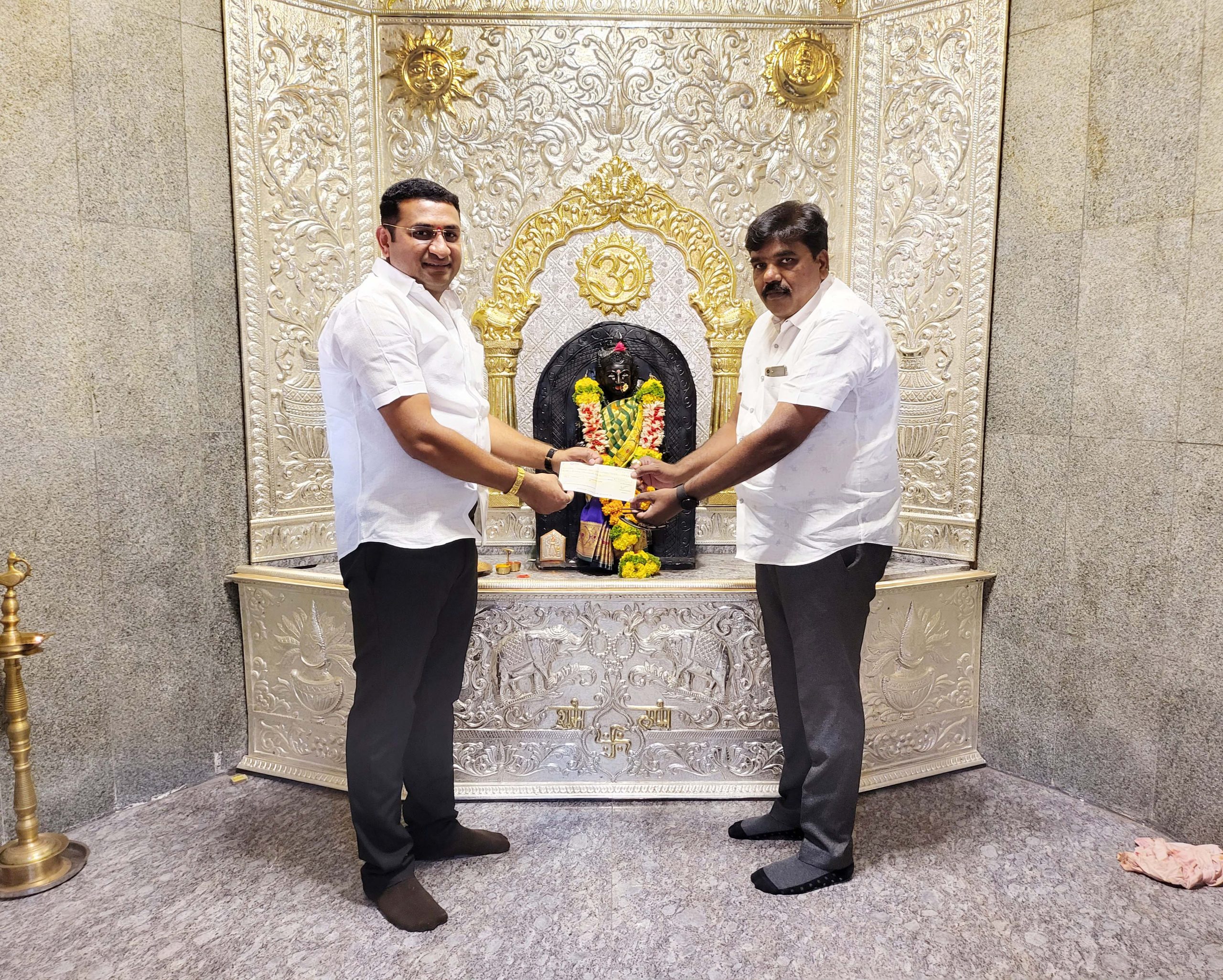 दिनांक १६/०५/२०२३ रोजी श्री जानुबाई देवी देवस्थान ट्रस्ट मंदिराचा चांदीचा गाभाऱ्याच्या कामासाठी शाऊ फाउंडेशन तर्फे ११ हजार रुपयांचा देणगीचा चेक ट्रस्टचे सदस्य श्री विश्वास दादा आहेर यांच्याकडे देताना.