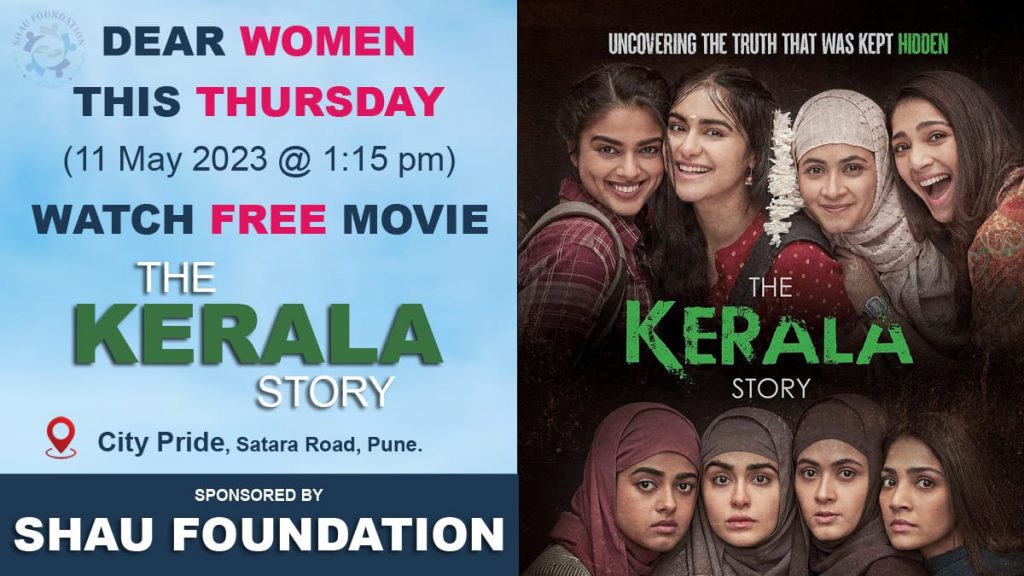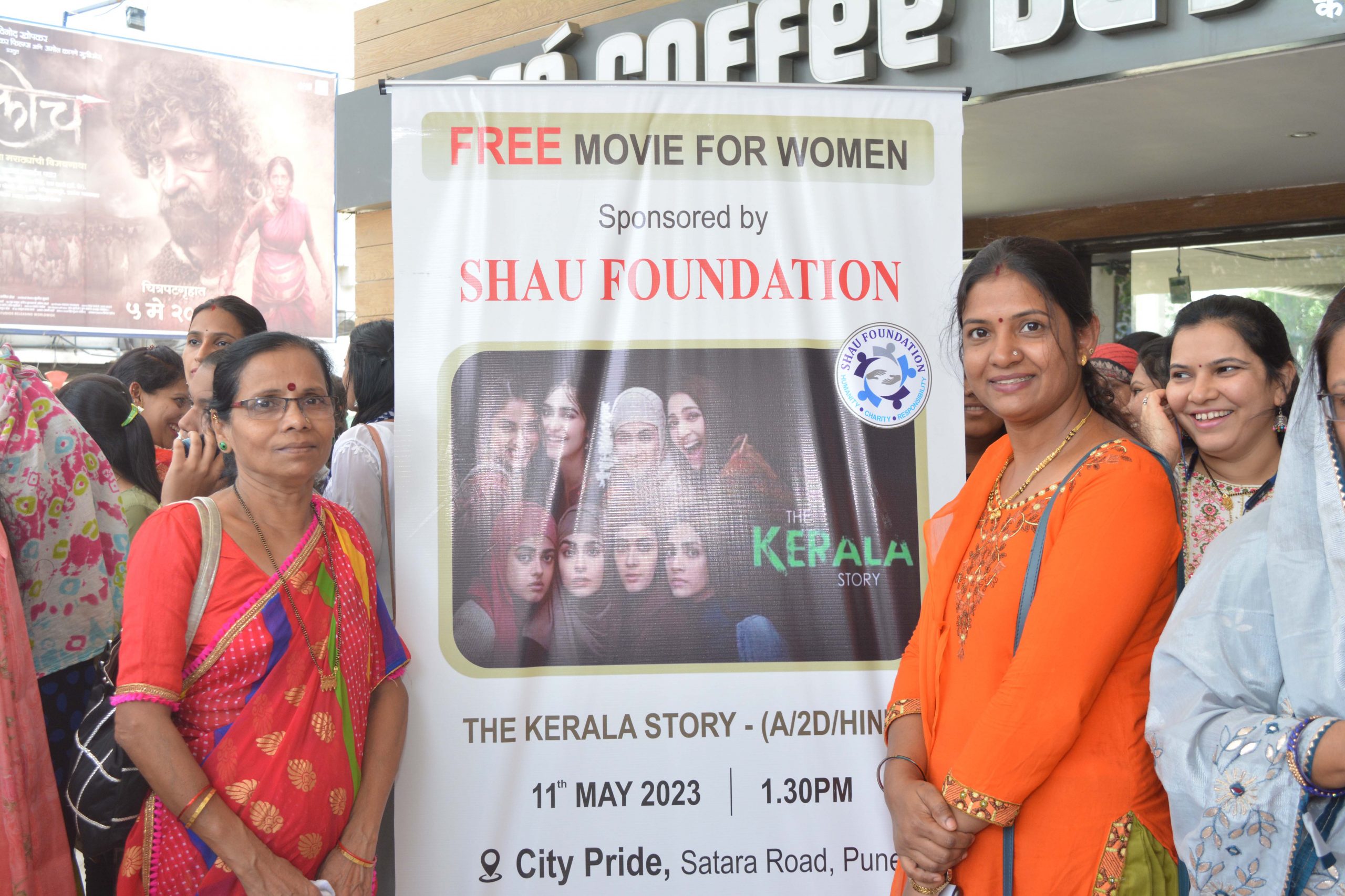“शाऊ फाऊंडेशन” तर्फे महिला सक्षमीकरण व जागृती करण्याच्या उद्देशाने आपल्या भागातील सर्व तरुण महिला आणि माता-भगिनींसाठी “द केरला स्टोरी” हा चित्रपट दिनांक ११ मे २०२३ वार गुरुवार रोजी दुपारी १:३० वाजता सिटी प्राईड, सातारा रोड, पुणे येथे मोफत दाखवण्यात आला. “शाऊ फाऊंडेशन” च्या माध्यमातून सामाजिक जबाबदारी म्हणून जागृती करण्याचा हा छोटासा प्रयत्न…!