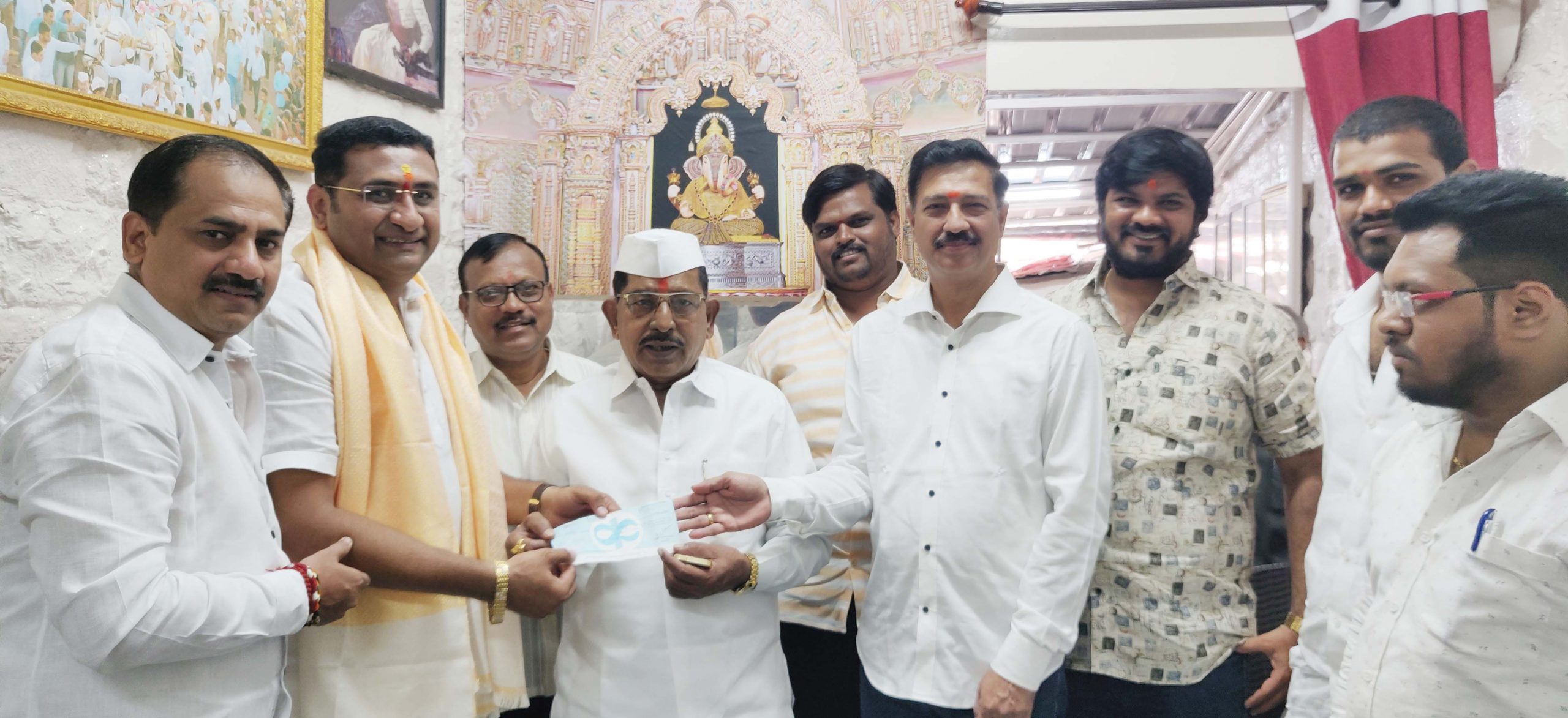 दिनांक ९/११/२०२२ रोजी तळजाई पठार, सर्वे नंबर ७, धनकवडी, येथील दत्त मंदिराच्या जीर्णोद्धाराच्या कामासाठी ५१ हजार रुपयांच्या देणगीचा चेक ट्रस्टचे अध्यक्ष ॲड. श्री सुभाष मोहिते साहेब यांच्याकडे देताना.