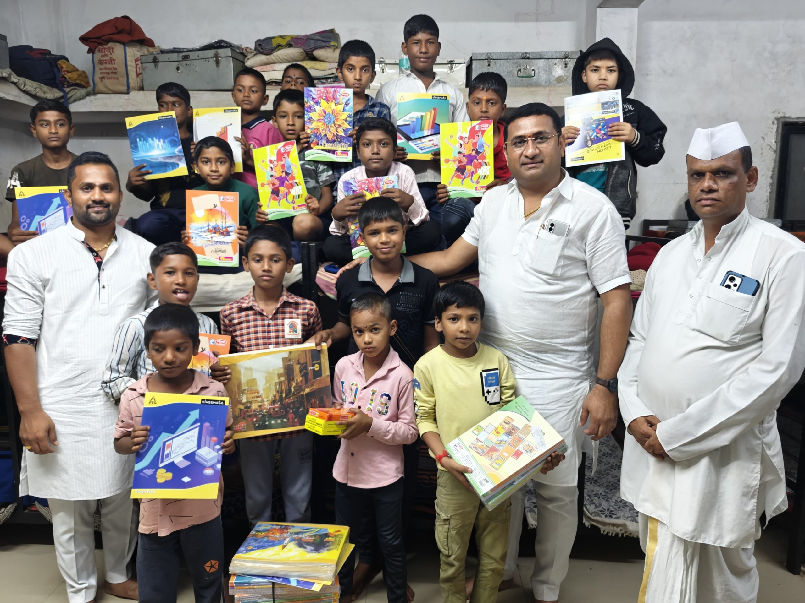 The Trust provides Books, writing material etc. in rural areas so that the parents do not feel the extra burden to send their children to school.